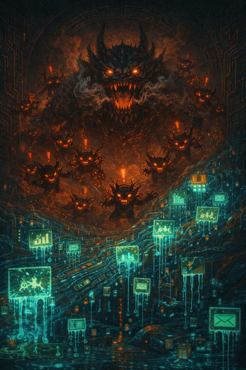 Suddenly, a chilling roar echoes across the tunnels as the Latency Beast re-emerges, flanked by a swarm of Error Imps! In an instant, the data streams slow to a crawl. Bits drip sluggishly forward, every request and response bogged down by the creature’s corrupting aura. The tunnels overflow with snared packets and bottlenecked requests—the whole network is flooded with latency.