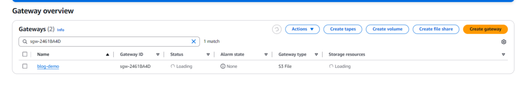 Once you’ve completed all the configuration steps, you should see your Storage Gateway listed as “Configured” in the console.