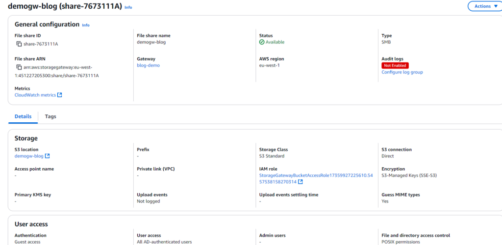 When creating the file share, you’ll need to associate the Gateway you previously set up with an S3 bucket. Once that’s done, you can go ahead and create the file share.