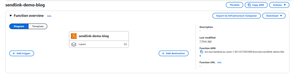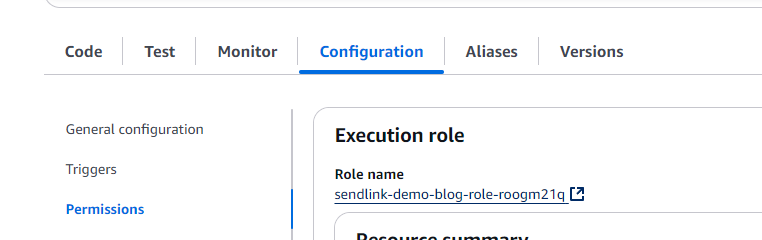 Youāll see a link to the IAM role associated with your Lambda function. Click on it to open the IAM page.
