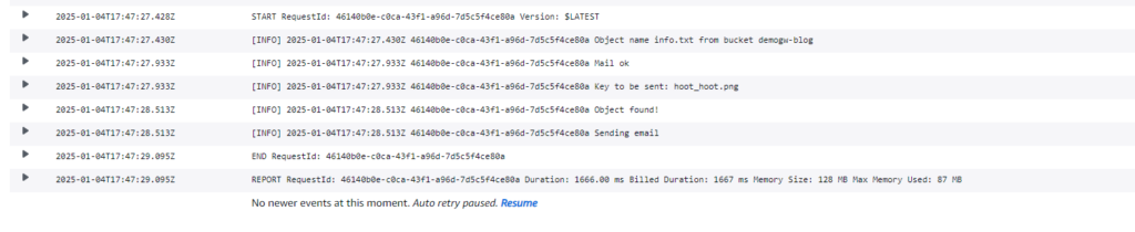 Looks good! Let’s confirm on Cloudwatch: