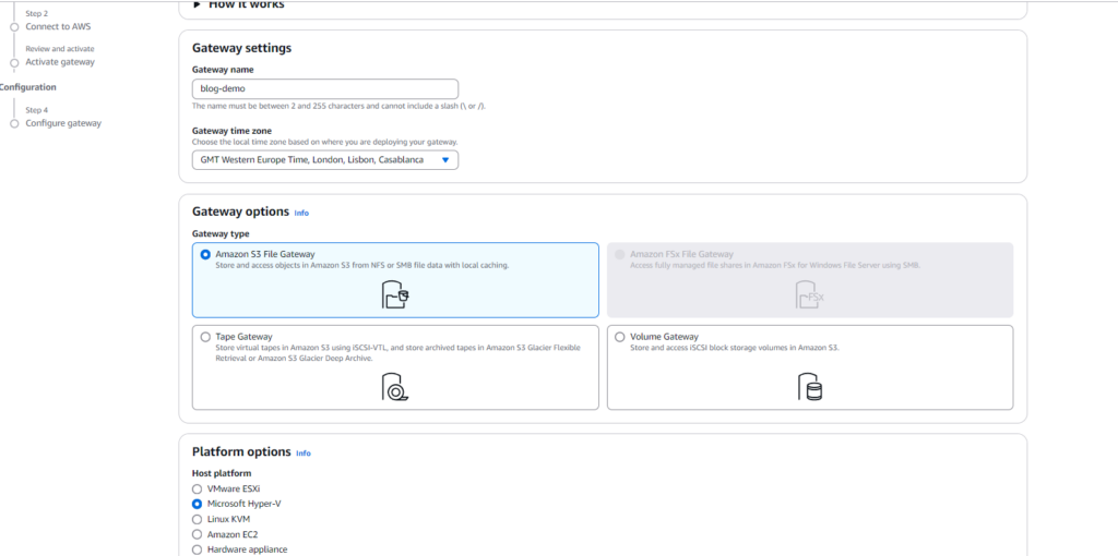 Pro Tip: The gateway type is important! While there are several types available (like Volume Gateway or Tape Gateway), S3 File Gateway is perfect for file storage and sharing scenarios.
