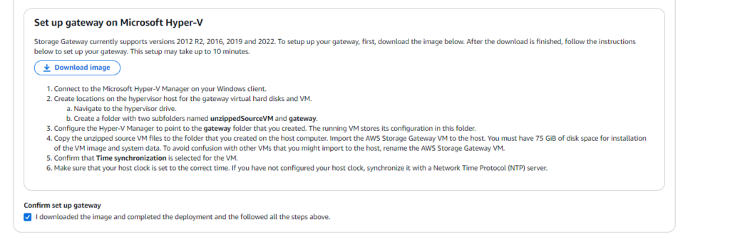 With that out of the way, we now have to connect the VM to the AWS console, so that AWS knows what Gateway are we working with and to be able to create file shares.