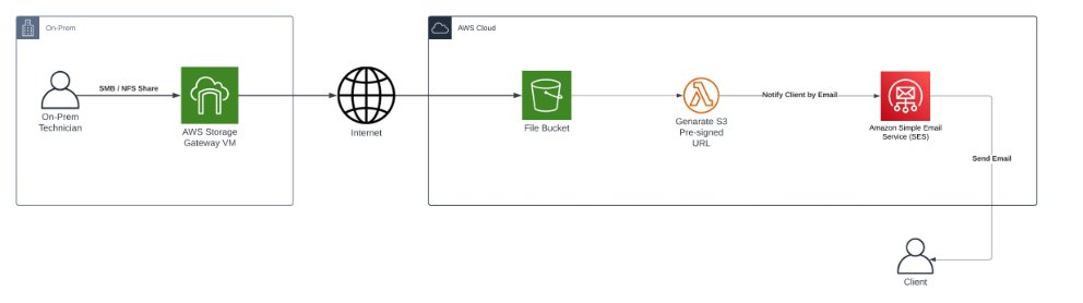 With AWS Storage Gateway, we can leverage the power of “Hybrid Cloud” architecture. This means we get the best of both worlds: AWS services handle the heavy lifting of file processing and delivery, while clients continue using their familiar on-premises infrastructure.