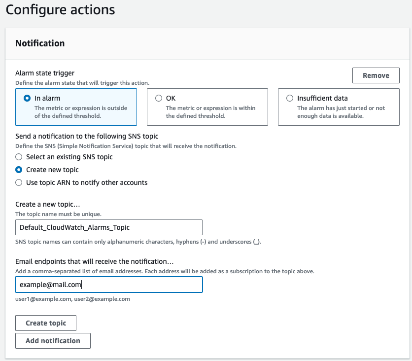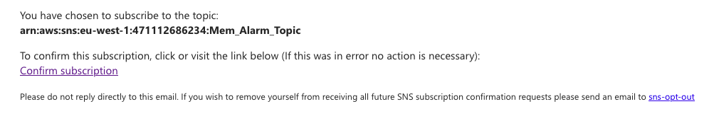 And the alarm is created! Don’t forget to accept the topic subscription in the email:
