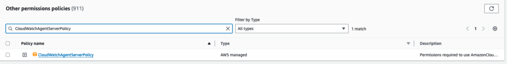 To write the metrics into the Cloudwatch we need to give the instance permissions for it, so first let’s add the cloudwatch agent policy to the role attached to the instance: